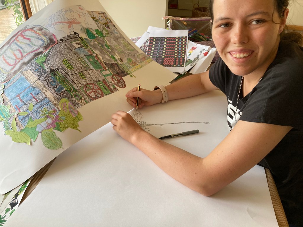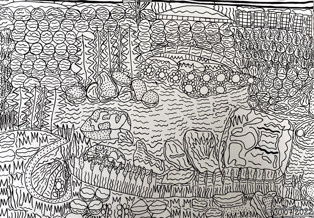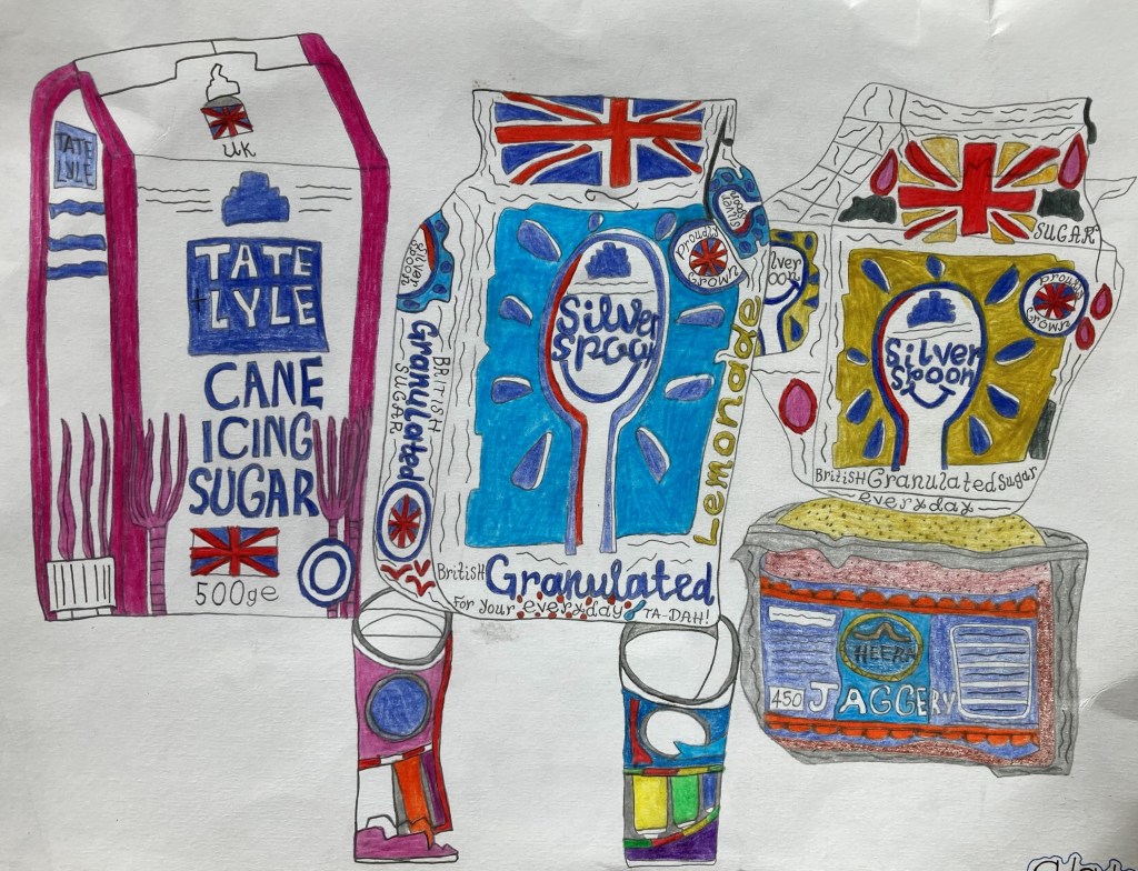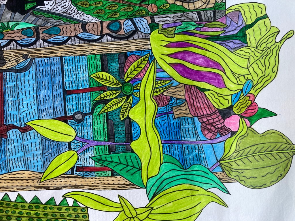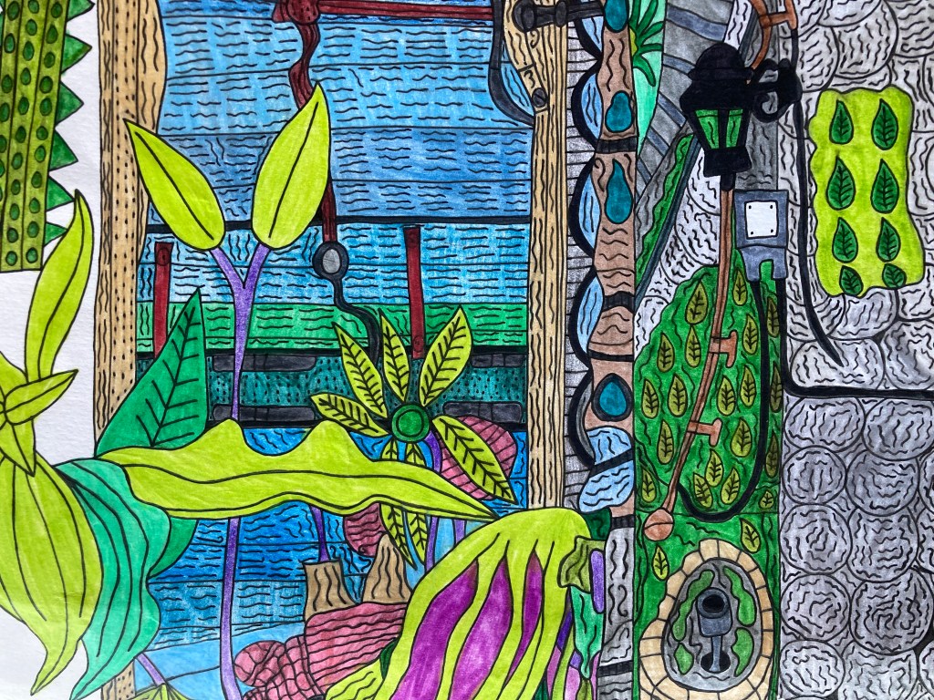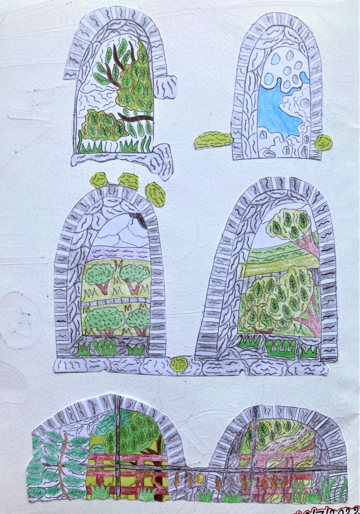 I went on an adventure with Emily to Llangihanngel-y-Pennany near Porthmadog. First we went to see The Brynkir woolen mill to draw it, until a mean lady made us leave. Then Emily chatted to a man who said there was a lady at the cafe who was knowledgable about the valley. On the way we explored the slate slab mill Pandy (where I have been with my family over the years since I was young). I took picture of all the nature objects and creatures and beautiful green trees. Then we went to Cathy’s cafe for a cup of tea and the sheep were being sheared. On our way home at the parish church we came across farmers with wool in big bags, they said it was being taken by the British Wool Board.