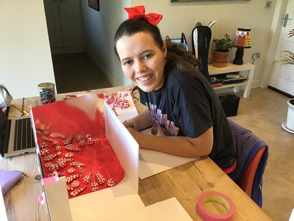 As an artist, I love to write stories about myself and my memories and what makes me happy. I love decorating boxes, plates and ice cream cups with childhood memories and made-up characters. I have produced large scale paintings of tea, cakes and comfort foods. My own style and themes have been instrumental in curating this exhibition.