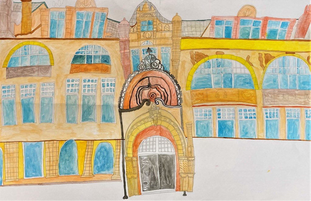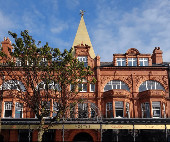 This is a painting I did of the front of the Mostyn Gallery to put on my model. I like details of the windows and and the different colour of the walls.
