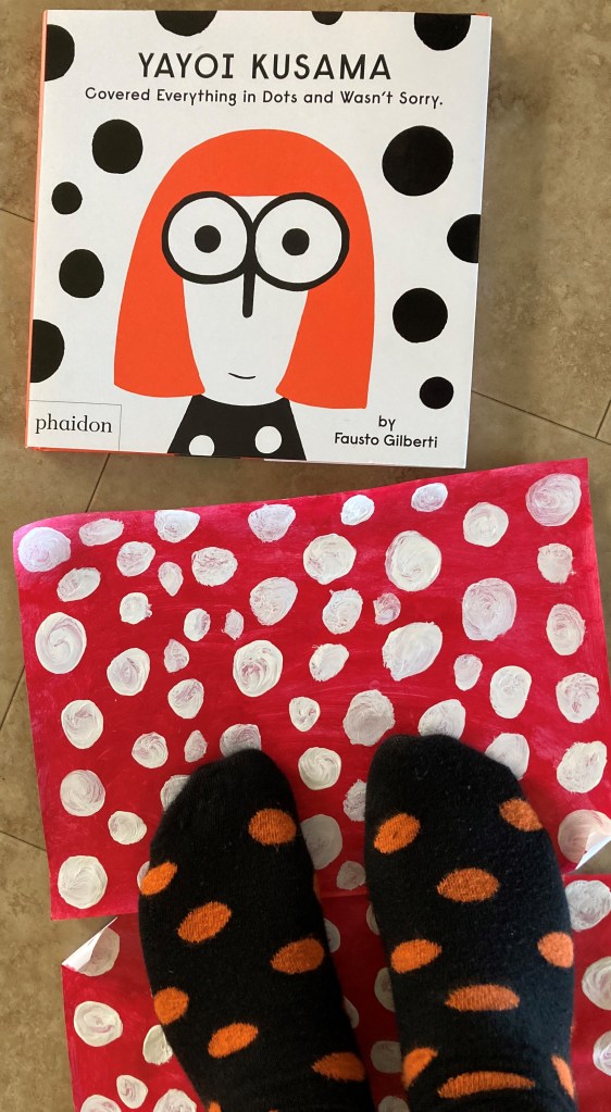Kusama is a Japanese artist that is especially known for creating works with polka dots. She was born in 1929. When she was young she lived on a seed farm and plant nursery and as a child she began seeing dots everywhere. Her childhood can be seen reflected in the patterns in her work, much of which features polka dots. Kusama still exhibits internationally, although now in her nineties she has chosen a sheltered life within an institution, a hospital which provides her with comfort and safety.