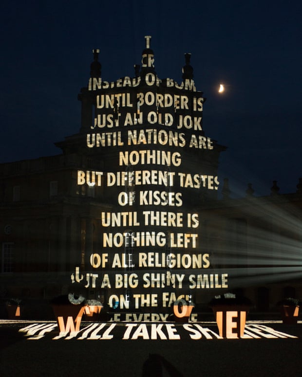 This is words and sentences on a building, I like it because it reminds me of Christmas decorations and houses with Christmas lights. The message is one of peace.